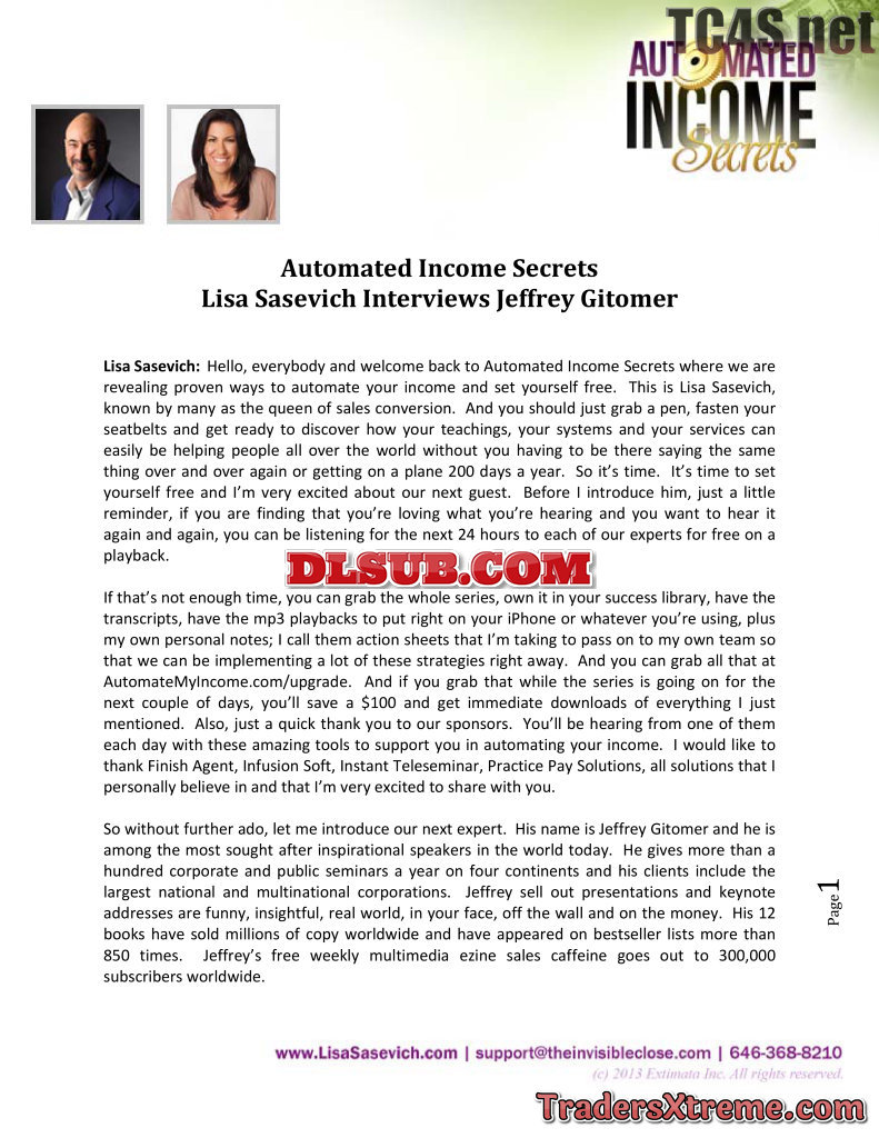Automated Income Secrets Lisa Sasevich Jeffrey Gitomer Transcript - JPG Image File
