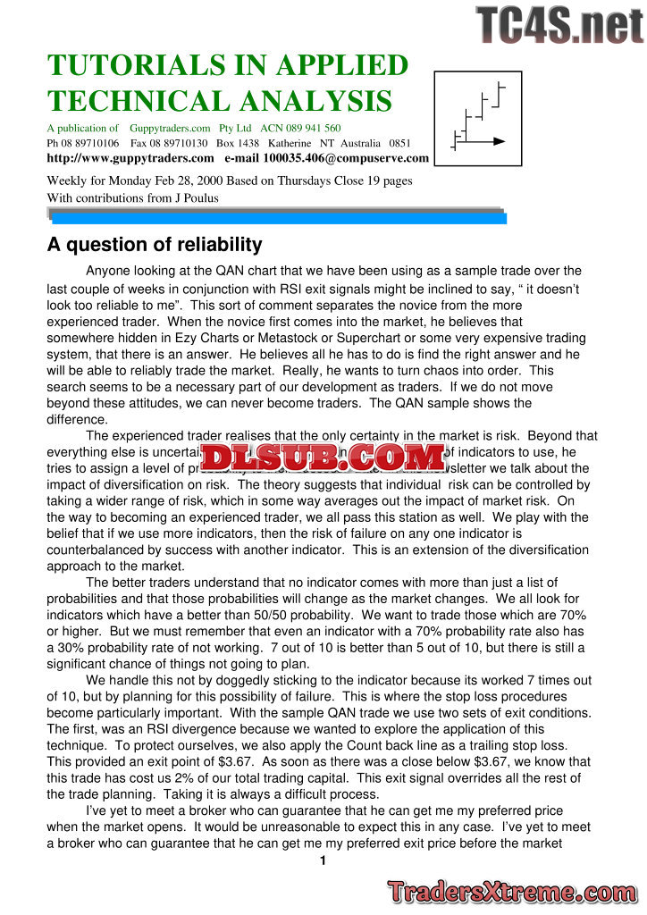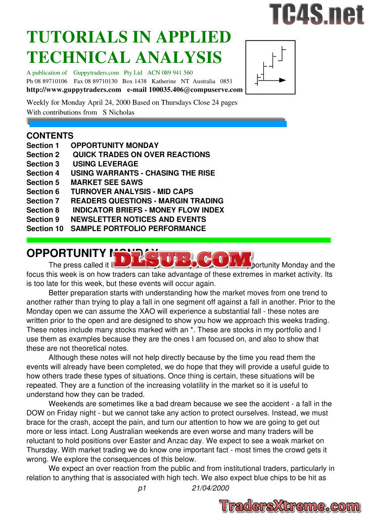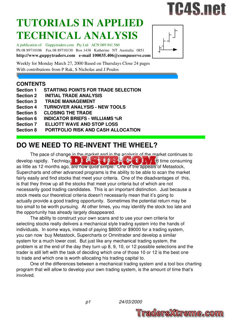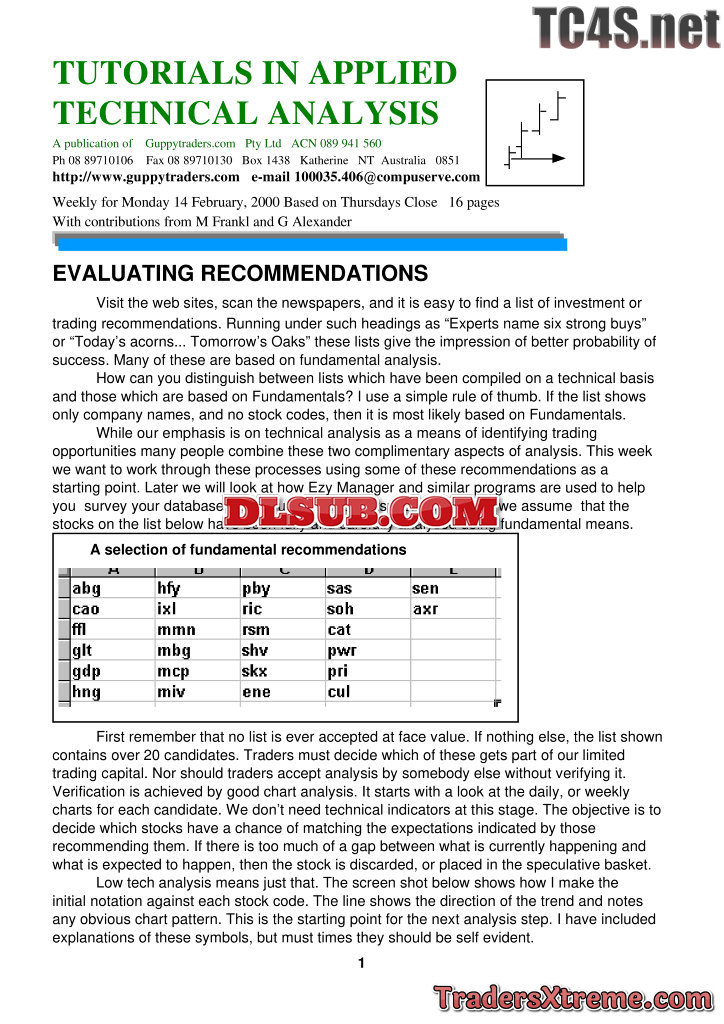 Tutorials In Applied Technical Analysis Publications From Guppytraders